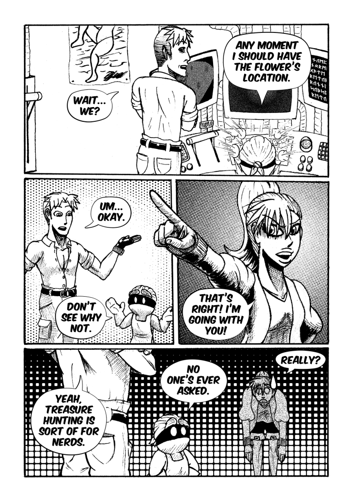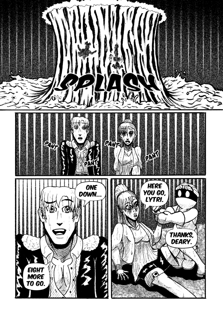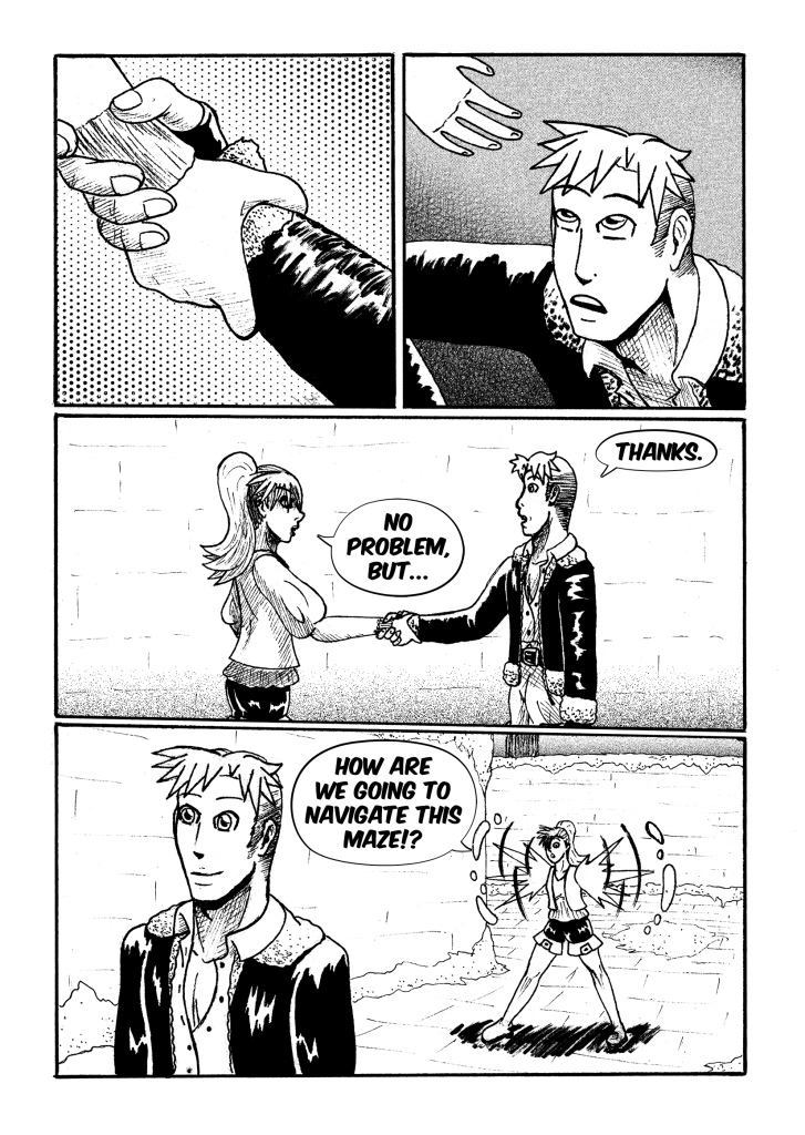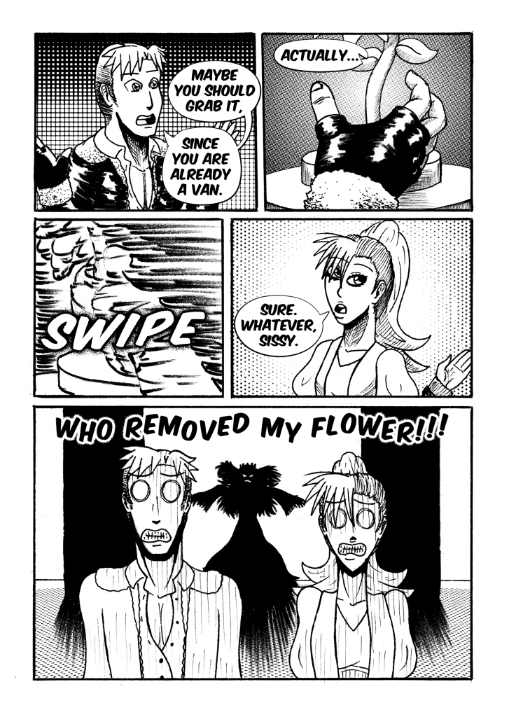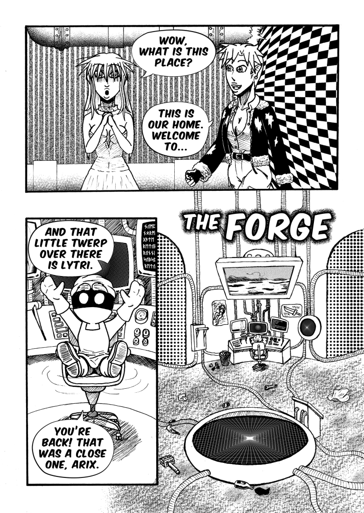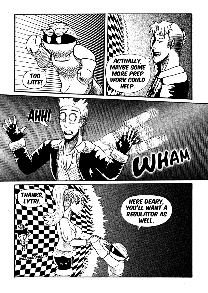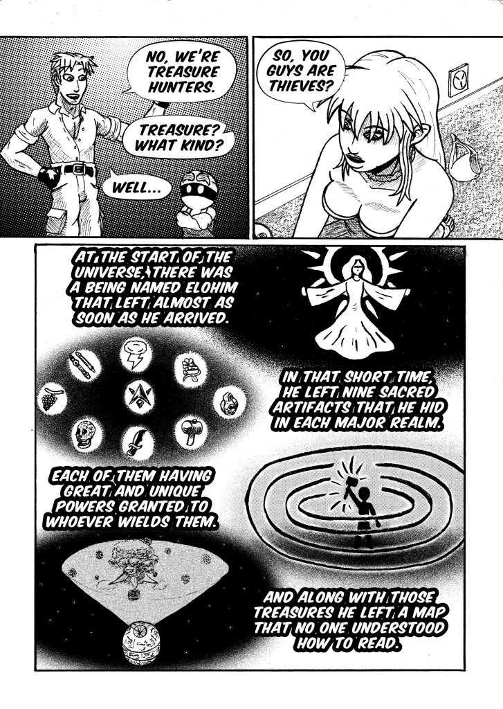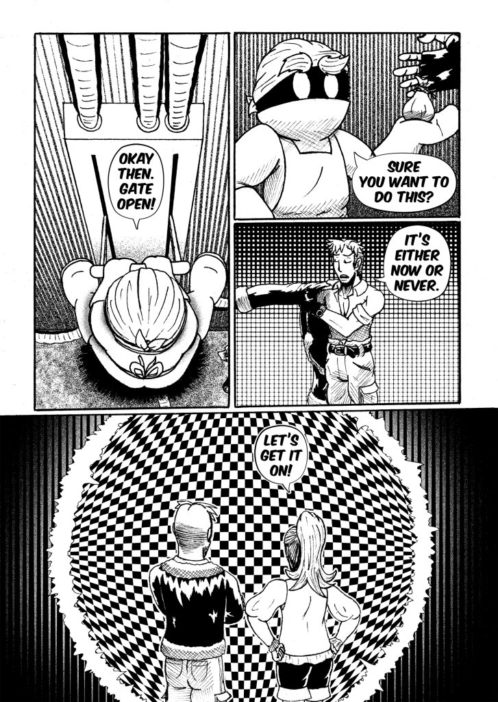“This is a story I’m making for the 100th Jump Tezuka Manga Contest, which is open internationally for the first time. Because I’ve been working this diligently, I haven’t been able to work on the webcomic or just about anything else for the site. Since the post will be publicly available on the site anyway and you can submitted any previously published, non-commercial work, I will uploaded pages to this gallery, for free reading, as I finish them. Because it is for a manga contest it is entirely in black and white and read from right to left. This is the (mostly) English version, but there is eventually be a Japanese translation as well. Hope you enjoy this wacky story. ” – Malcolm Terzich