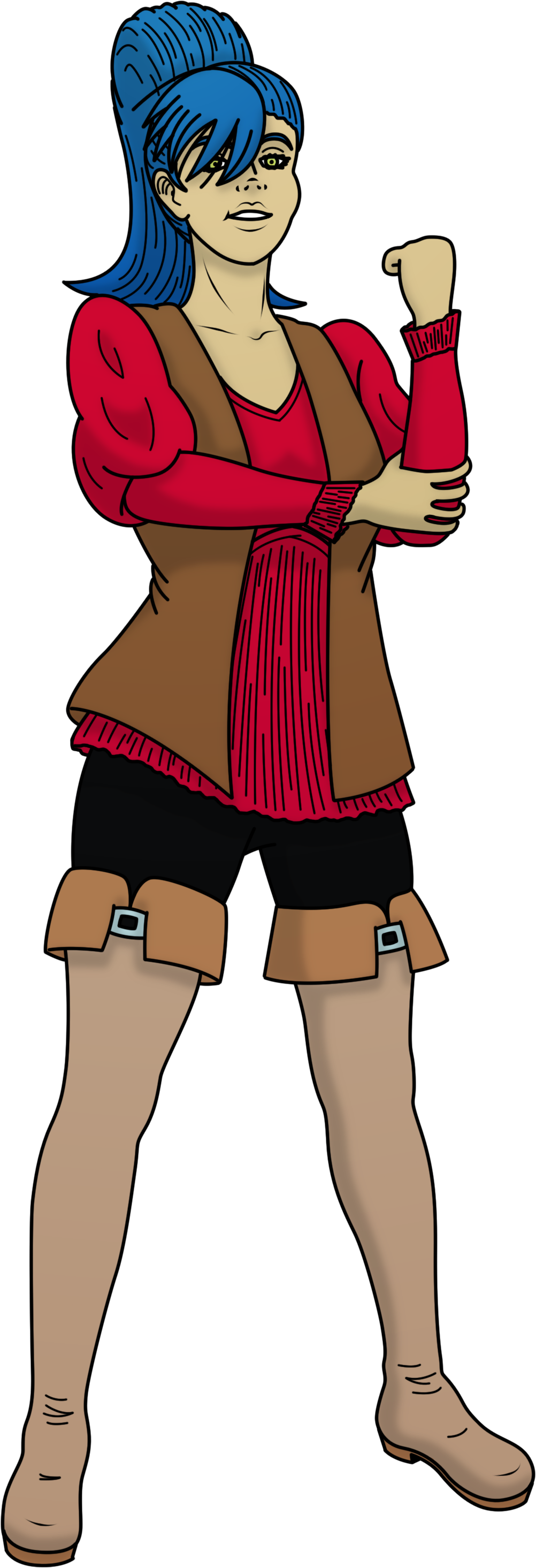 Kvirja has a hopeful spirit. She wants to experience the world after being cooped up in the same city her whole life and doesn’t have much patience for people who hesitate to act. She is very straightforward with her words and intentions yet at the same time a bit socially inept from her lack of friends throughout her life. She is also somewhat tomboyish having taken up roles in her society that we would typically see as more masculine and, despite having a sense of style, she will almost always prefer function of fashion. She is a practical kind of gal.